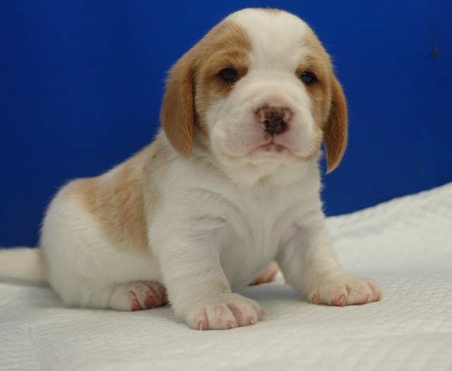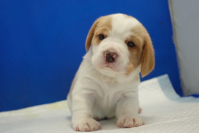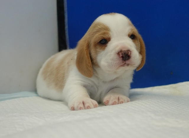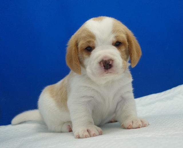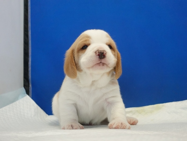 | コメント | 父犬ブラック、タン&ホワイト、母犬ハウンドカラー から生まれたレモン&ホワイトの男の子です。 現在体重1400gです。 まんまるでとっても可愛い男の子です。 女の子のような優しい顔をした子です。 まだまだお母さんが恋しくて泣き虫さんです。 離乳食も少しずつ食べ始めこれからの成長が とても楽しみです。 見学はいつでもできますのでお問い合わせ下さい。 |